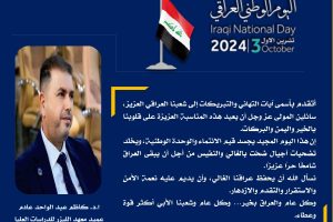 تهنئة السيد عميد معهد الليزر للدراسات العليا الى الشعب العراقي بمناسبة اليوم الوطني العراقي