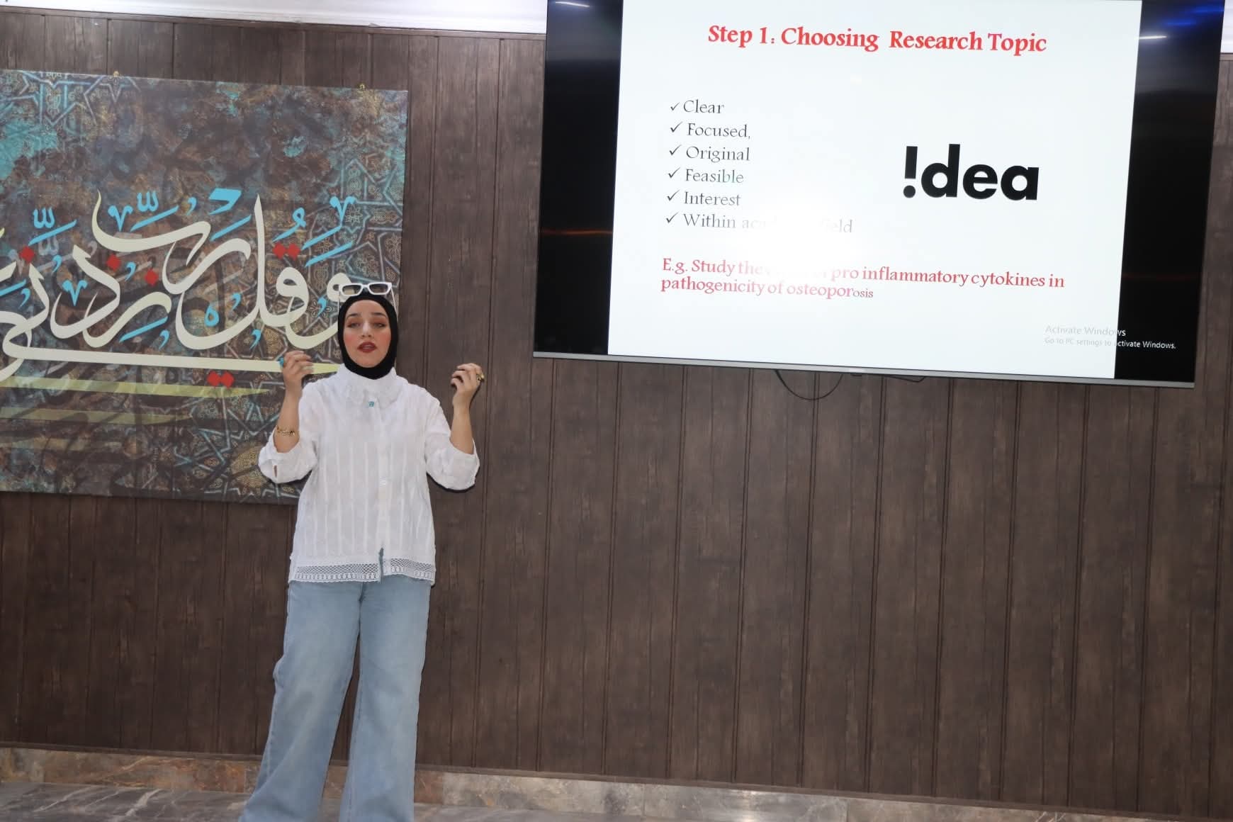 برعاية السيد عميد معهد الليزر للدراسات العليا في جامعة بغداد الأستاذ الدكتور كاظم عبد الواحد عادم المحترم، أقامت وحدة التعليم المستمر في المعهد ورشة عمل بعنوان “تعلّم كتابة البحث العلمي”، قدمتها المدرس المساعد ريم سالم سلطان، التدريسية في المعهد.