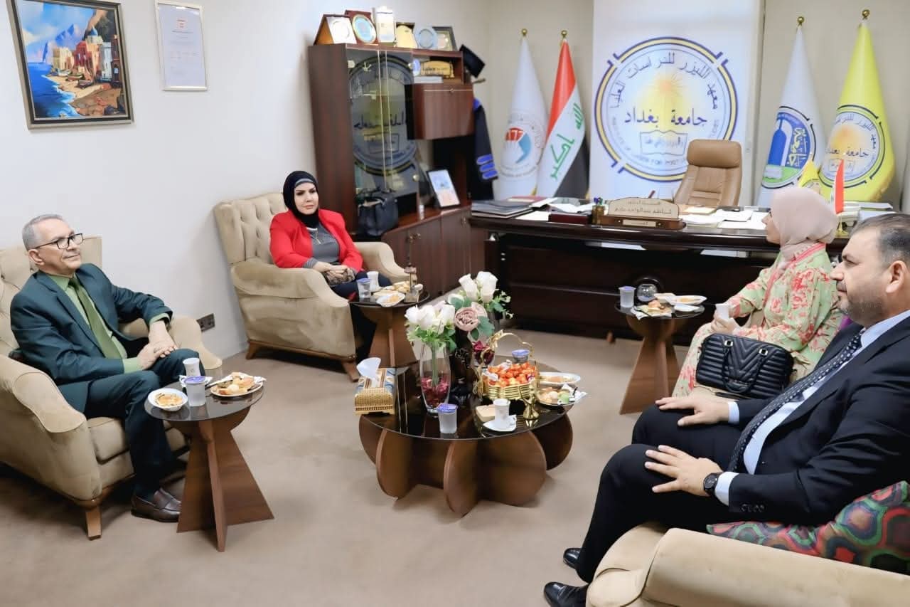 وجرى خلال اللقاء بحث سبل تعزيز التعاون العلمي والأكاديمي بين تشكيلات جامعة بغداد، بما يسهم في تطوير البحوث المشتركة وتبادل الخبرات في المجالات التخصصية ذات الاهتمام المشترك، ولا سيما في ميادين التطبيقات الليزرية والهندسية والوراثية.