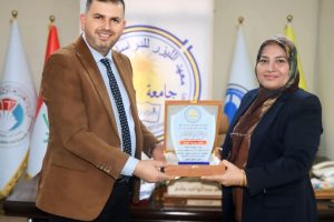 السيد عميد معهد الليزر الدراسات العليا المحترم في جامعة بغداد يكرم أ.م.د. ليلى محمد العامري بدرع التميز والإبداع تقديراً لعطائها الوظيفي